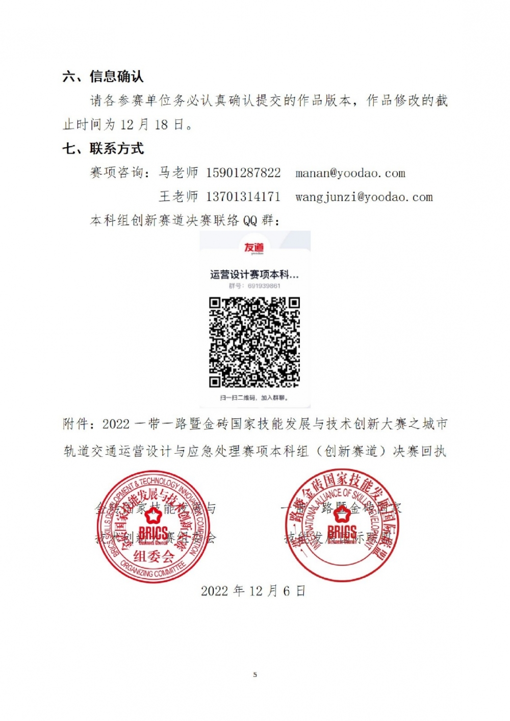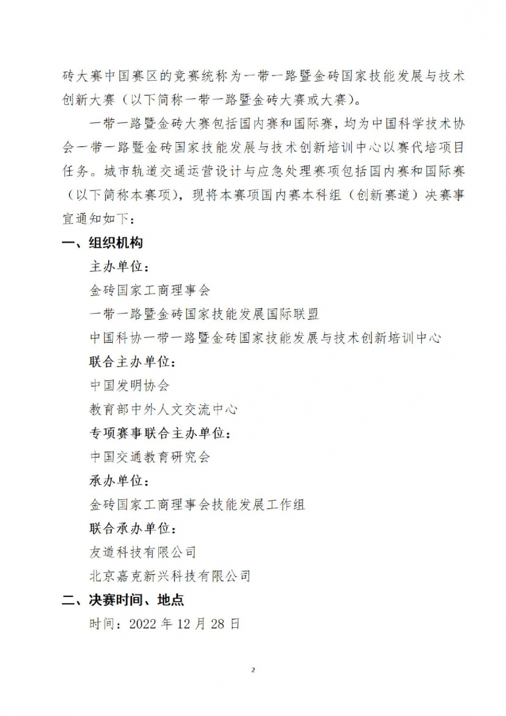 關于舉辦2022一帶一路暨金磚國家技能發展與技術創新大賽之城市軌道交通運營設計及應急處理賽項(本科組)創新賽道決賽的通知